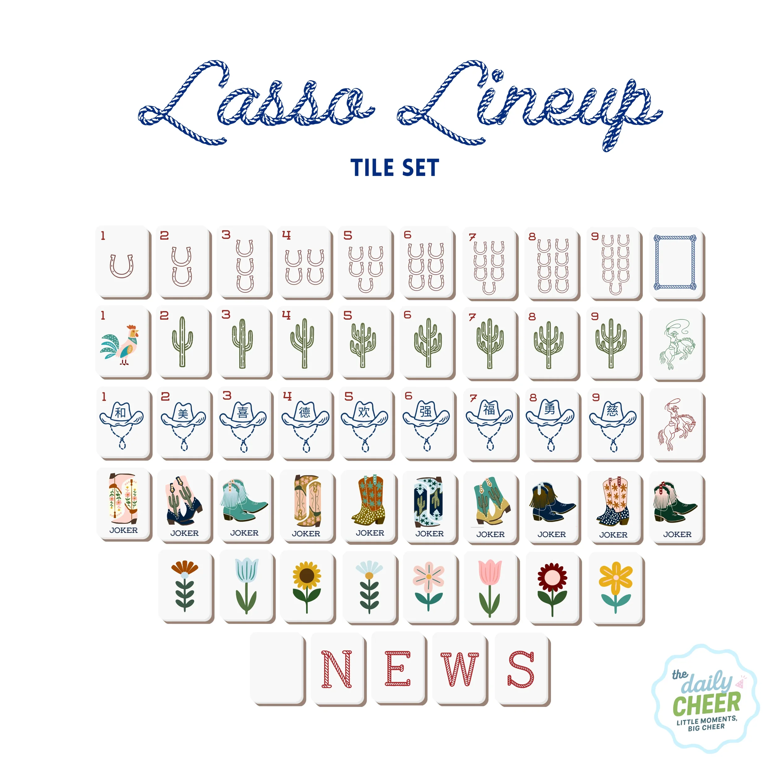 The Daily Cheer tiles, racks and mats are all about color, personality and fun- because your mahjong game should have as much personality as the people around the table.